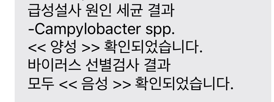 검사 결과의 핵심은 “세균성 장염, 특히 Campylobacter 감염이 확인되었다”는 것입니다.