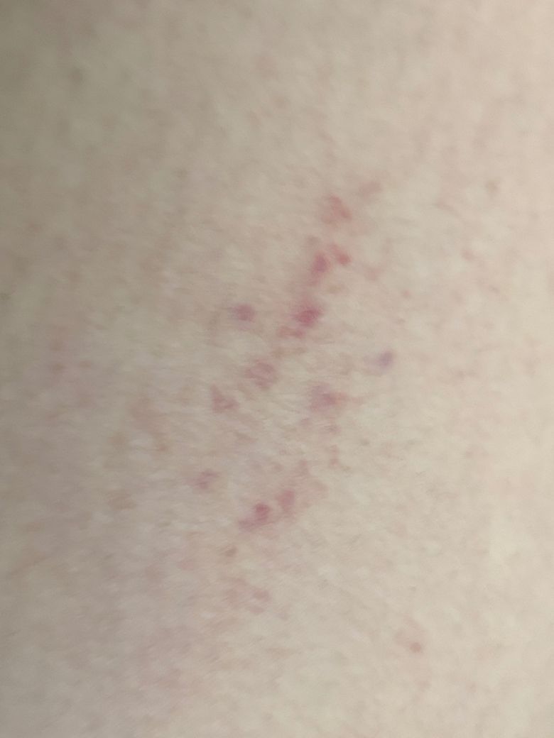 피부를 긁어서 생겼던 붉은 점들이 안없어지고 5~6일째 허벅지에 남아있어요. 꼬집으면 감각이 살짝 약한 것 같기도 합니다. 무슨 질환인가요?