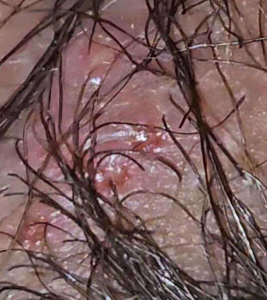갑자기 털 부분이 따갑고 부어서 봤는데 이런 상태라 걱정되서 물어봅니더ㅜㅜㅜ
