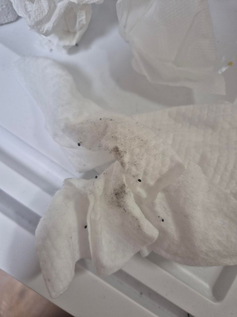 오늘 tv뒤에 한번봤는데 이 검은색 알갱이들이 있었어요 눌러보닌깡 ㅘㄴ전 으쓰러지는건아니고 약간 가루형태로 손가락에묻었고 약간 철냄새가났숩니다. tv뒤에 있었어요