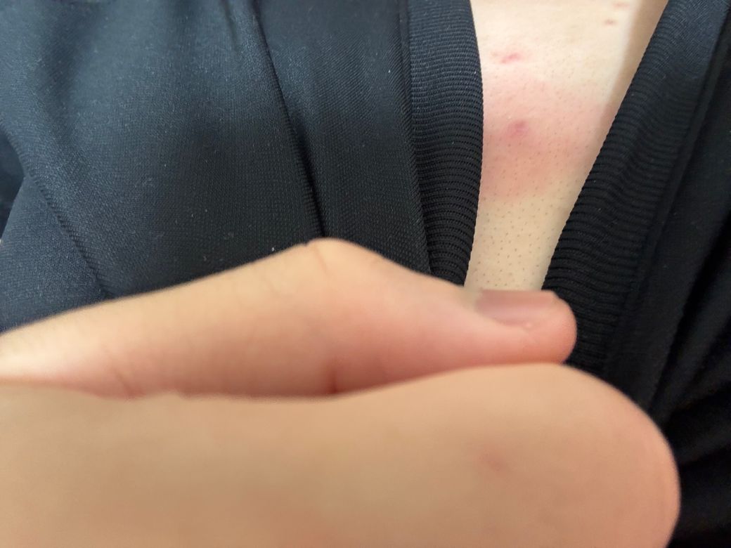 가슴쪽에 났는데 농은 안차있는거 같아요 여드름은 아닌것 같은데 안짜지고 어느순간 가슴에 나 있었는데 손톱으로 트러블 중앙을 찌르면 아파요