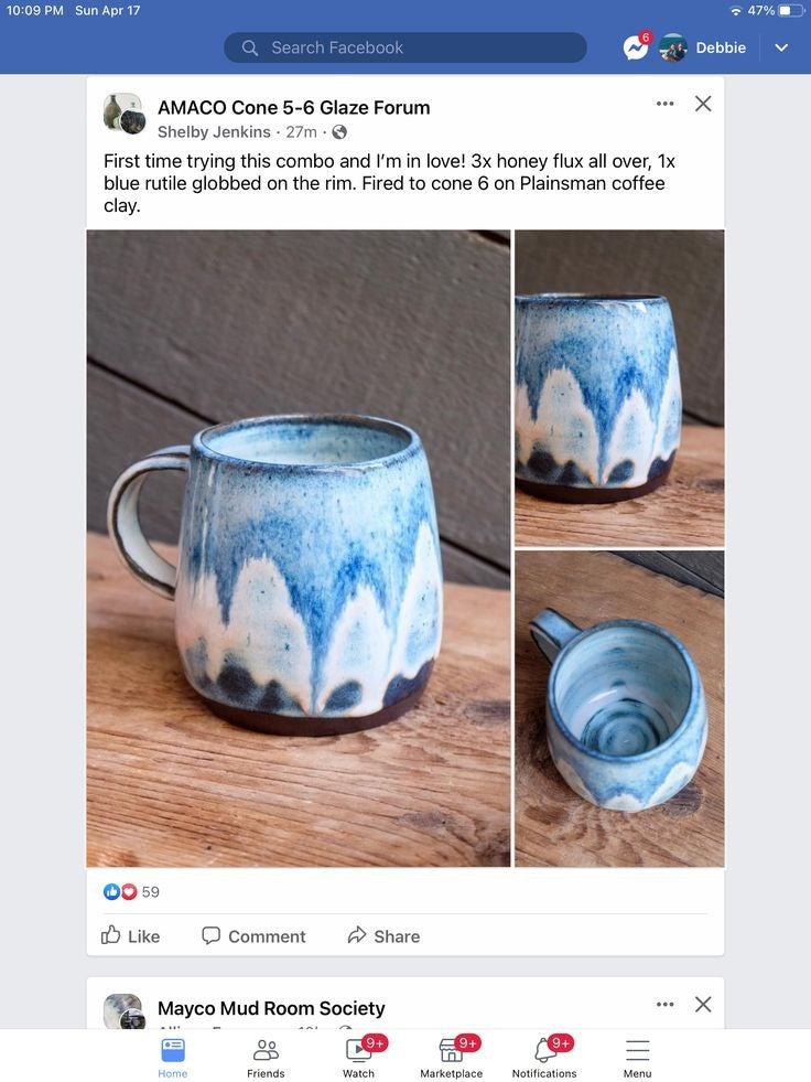 도자기 유약 실험에서 색이 예상과 다르게 나오는 경우는 정말 자주 발생하는 일입니다. 유약을 시유할 때 유약의 두께가 색상에 큰 영향을 미칩니다. 두꺼운 유약은 유약의 색상이 더 진해지거나, 유약이 서로 섞이기 쉬운 경향이 있습니다. 따라서 두 번째 시유에서 색이 섞여서 예상과 다른 결과가 나온 것 같습니다. Honeyflux 유약은 3회 붓시유 후 10분 정도 말리셨다고 했는데, 유약을 더 두껍게 바르기 위해선 여러 번 시유를 해야 할 수 있습니다. 그러나, 너무 많이 바르면 유약이 흐르거나 섞일 수 있기 때문에, 각 시유 후 충분히 말리고, 바를 때 유약을 얇게 붓는 것이 중요합니다. Blue Rutile 유약은 특정 온도에서 반응하여 색이 변할 수 있습니다. 특히 상단만 붓시유하셨다고 했는데, 이때 붓시유의 양과 위치가 중요합니다. 각 유약의 두께를 줄여보세요. 유약이 너무 두꺼우면, 구워지는 동안 서로 섞여서 원하지 않는 색이 나올 수 있습니다. 1250도에서 산화 구운 결과가 나온다고 하셨는데, 구운 온도를 조금 낮추거나 높여보는 것도 고려할 수 있습니다. 특정 유약은 온도가 높을수록 더 많이 흐르거나 색이 변할 수 있습니다. 1200도에서 구워보거나 1300도에서 구워보세요. Honeyflux는 얇게 바르는 것이 중요하며, 한 번에 여러 번 붓시유하는 것보다 한 번에 충분히 붓시유 후 말리고, 건조된 후 다른 유약을 바르는 것이 좋습니다. 작은 샘플을 만들어보세요. 같은 유약을 조금씩 다른 방법으로 시유하고, 구워서 색상의 차이를 비교하면 문제 해결이 더 쉬워질 수 있습니다. . Honeyflux 유약을 얇게 바르고, Blue Rutile을 상단에 얇게 바른 후 두 유약이 섞이지 않도록 말린 상태에서 구워보세요. 구운 온도를 약간 조정하거나, 유약의 두께를 줄여보는 것도 좋은 방법입니다. 실험을 통해 원하는 색상을 얻을 수 있기를 바랍니다! 🎨