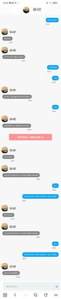 Sns를 통해 한 여자분이 인터넷 방송을 들으러 오라고 5000000코인을 주고 이거 돌려받아야한다고 했는데 들어가려면 30만원을 내야한다해서 플레티넘 값으로 냈더니 50만원 하면 퀵환전해준대서 했거든여 둘다 돌려준다고 해서 근데 환전하려면 20%인 116만원을 내야한대서 그거까지 내고 환불요청했는데 계좌 틀려서 계정이 막혔다고 그래서 다른 계정 로그인 해서 일주일 뒤면 돌려준다는데 너무 걱정되네요 일단 수수료 116은 아얘 못돌려받구요