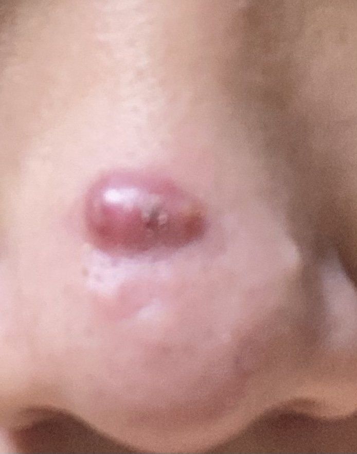 코에 뭐가 날 것 같은 느낌이 들긴했는데 갑자기 아침에 일어나니까 이렇게 크게 나있어요 시간이 1주일 정도 지난 것 같은데 아직 그대로고 너무 아파요 이거 어떡해야되나요?? ㅠㅠㅠㅠㅠㅠㅠㅠㅠ