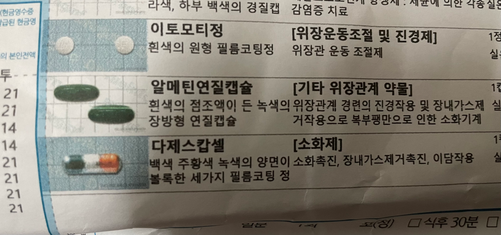 (밑 사진은 동행분께서 위장 계열 약으로 처방받아 오신 약입니다)