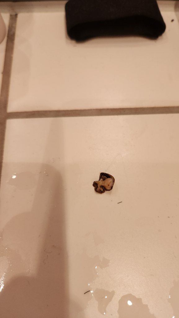해당 부위로 씹지 말고 반대측으로 씹으시다가 보철물 들고 치과 가셔서 부착하시면 됩니다.