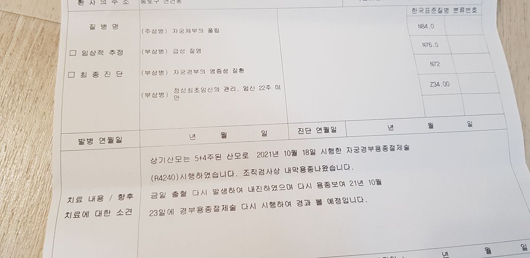 지난주 자궁용종 절제술했고 오늘또했어요ㅠㅠ 또생겨서