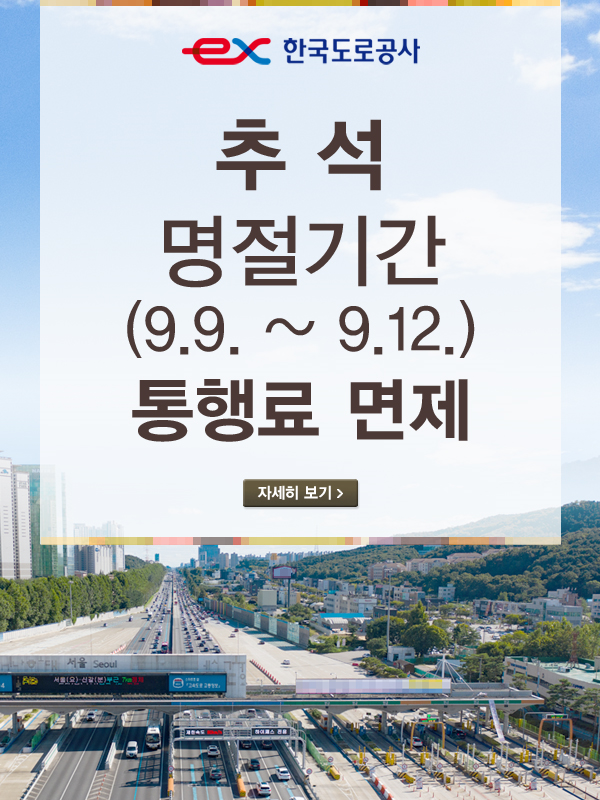 추석연휴기간 고속도로 통행료 면제는 연휴 4일간입니다.
