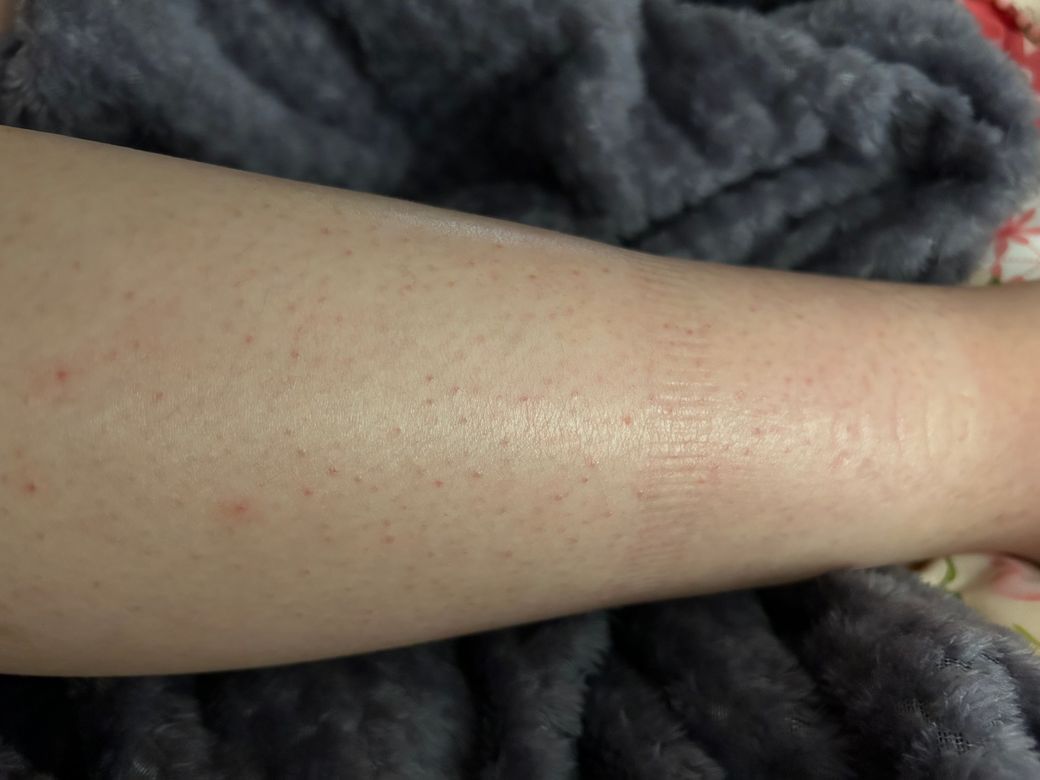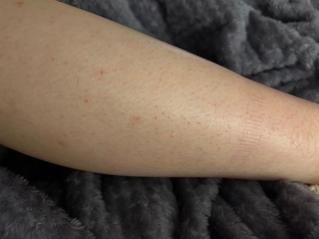 원래는 이렇게 안 심했는데 자반증 이후로(지금은 거의 사라져서 보이지도 않습니다) 다리 전체에 이렇게 뭐가 오돌토돌 올라와 있어요. 허벅지 아래쪽에도 마찬가지에요