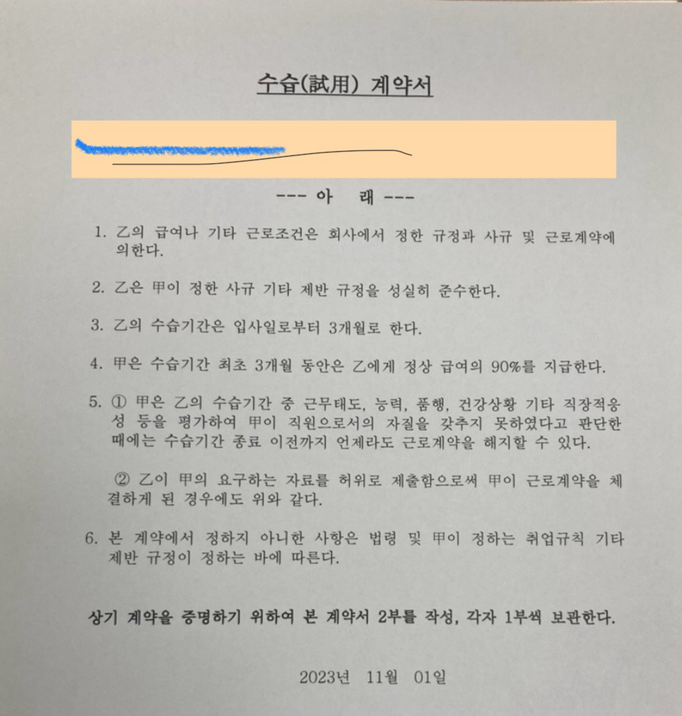 2. 입사 첫 날 수습(3개월) 계약서를 작성했는데 이런 것도 근로계약서라고 볼 수 있나요?