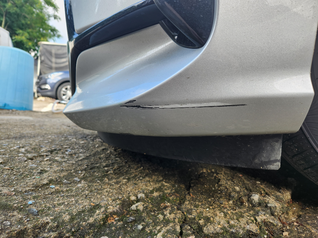 앞범퍼 왼쪽 아랫부분이 닿아