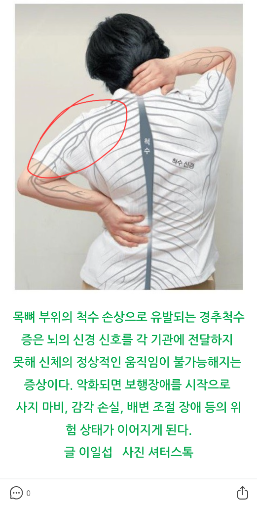 척수신경이 마비되면서 어깨나 팔이 문제가 될 수는 있어도