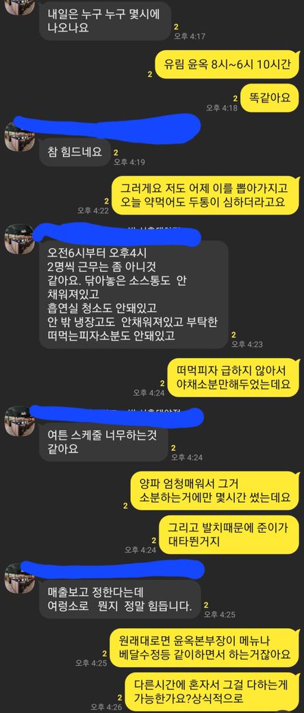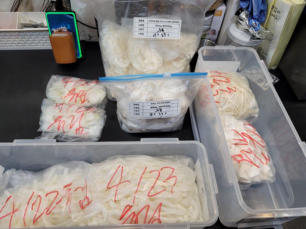 사장님이 지금까지 설거지고 소분이고 한 번도 하고간적이 없었거든요 일주일 내내 3년간요.
