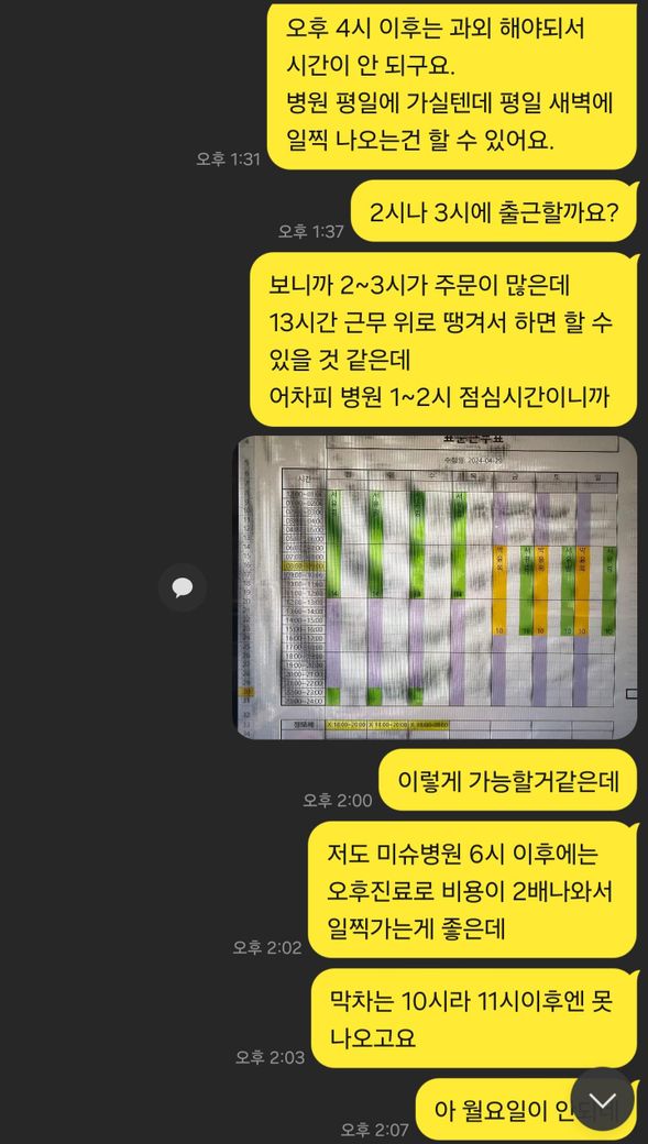 오후23~13시 일하면 서로 좋을 것 같다하니