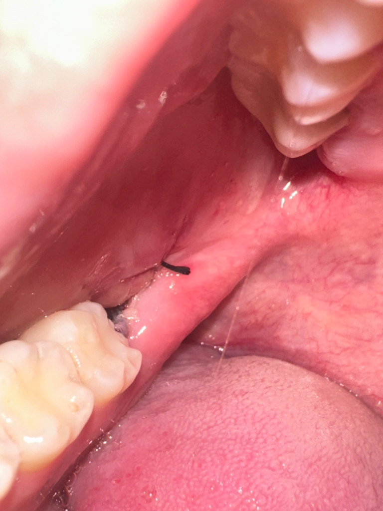 잇몸은 잘 아물고 있는것으로 보이며 음식물의 여주는 사진으로만은 판단이 되지 않습니다