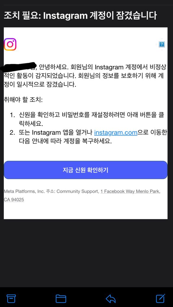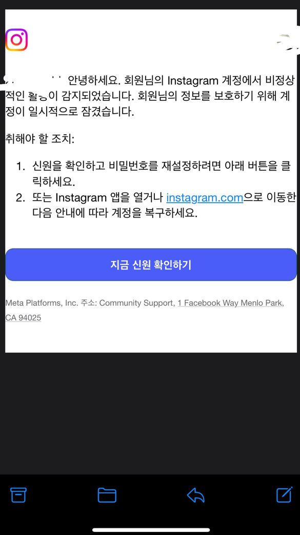 인스타그램 해킹으로 인한 계정 정지 경찰 신고