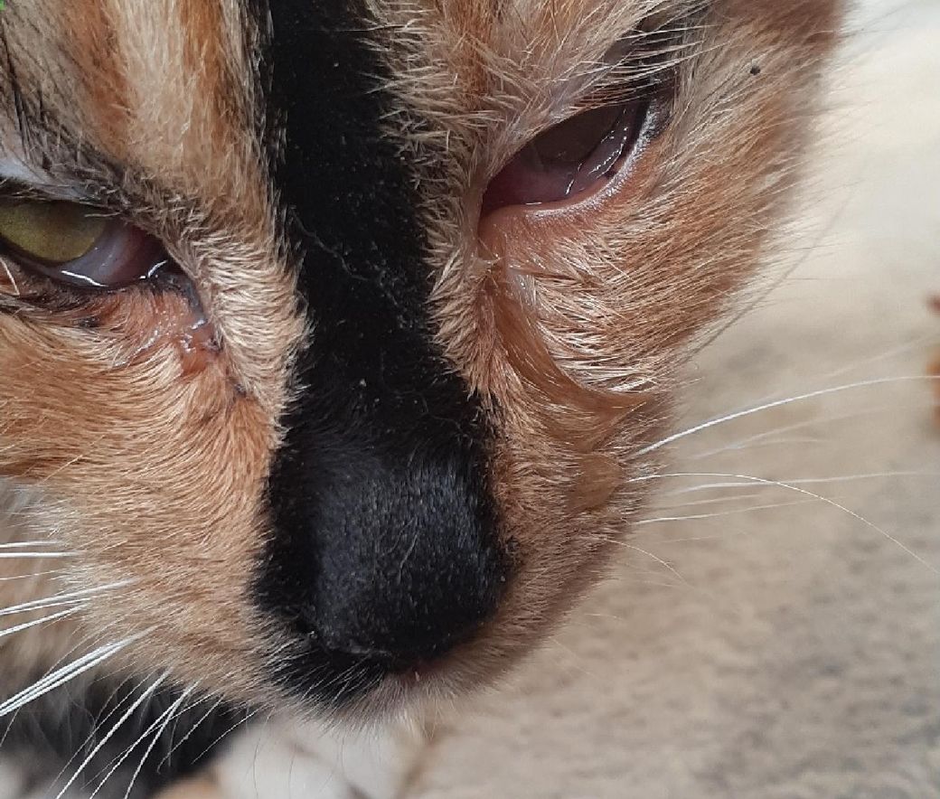 핵심만 말하면 전염성 눈감기 가능성이 크고, 약만 받기보다 최소 한 마리는 직접 진료 보는 게 가장 안전합니다. 손을 못 타면 통덫이나 이동장으로 포획해서 데려가는 방법을 먼저 생각하시는 게 좋습니다.