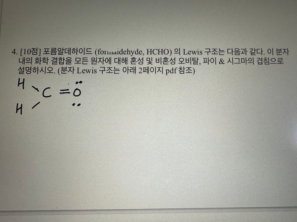문제는 다음 사진 참고해주세용. 파이,시그마 겹침이 비혼성 오비탈 아닌가요?? 어떤식으로 답을 작성해야할 지 모르겠어요. 수소와 탄소 단일 결합은 sp 혼성 오비탈이라고 해도 되나요?