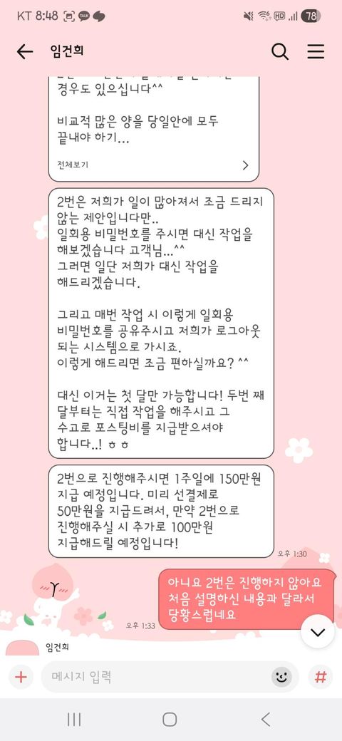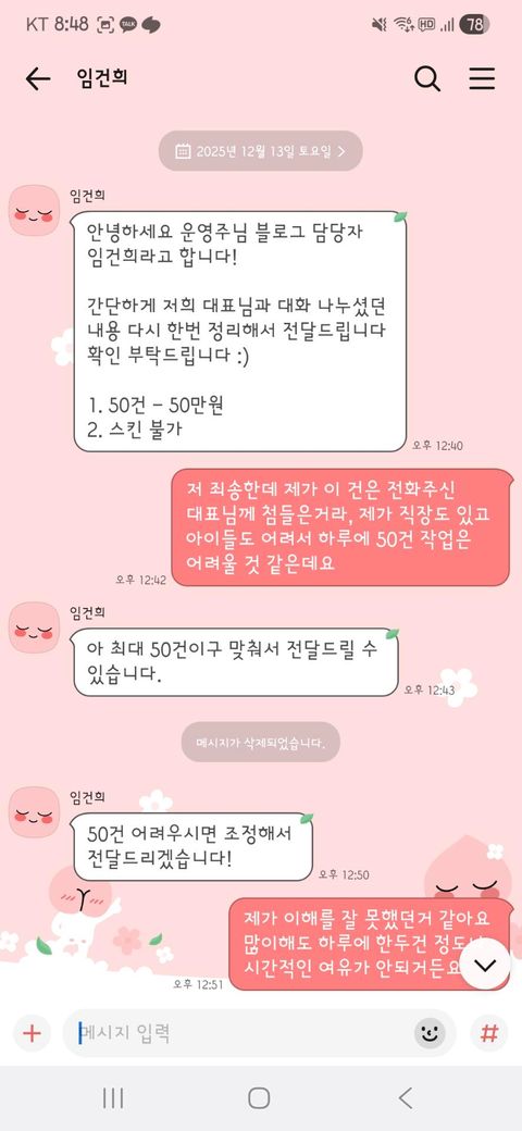 블로그쪽으로 댓글로 문의를 받고 전복협찬을 받고 블로그리뷰 작성후 원고포스팅료를 제안받아 진행하겠다고 했는데 이후 추가로 다른 포스팅작업을 제안받아 1건이상 복사붙여넣기 계약을 제안받고 진행계약을 체결하였는데 대표자가 전화한다하여 통화하니 갑자기 하루 50건 포스팅을 하는 건이라며, 법인으로 소득공제 급여지급이 된다고 해서 포스팅수량을 채울 수 없고 비대면으로 개인정보를 전달하고 싶지 않다고 전달하였는데 블로그임대까지 제안하여 진행기업의 업무형태가 사기성이 높고 블로그 피해가 우려도어 계약을 파기할 수 있는지 문의드립니다