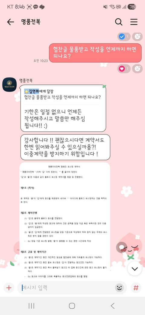 블로그 협찬 및 포스팅 운영 계약 파기 가능한지 문의드립니다