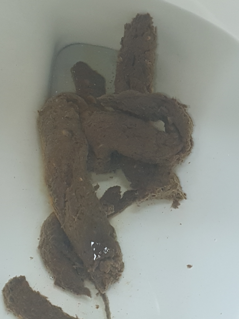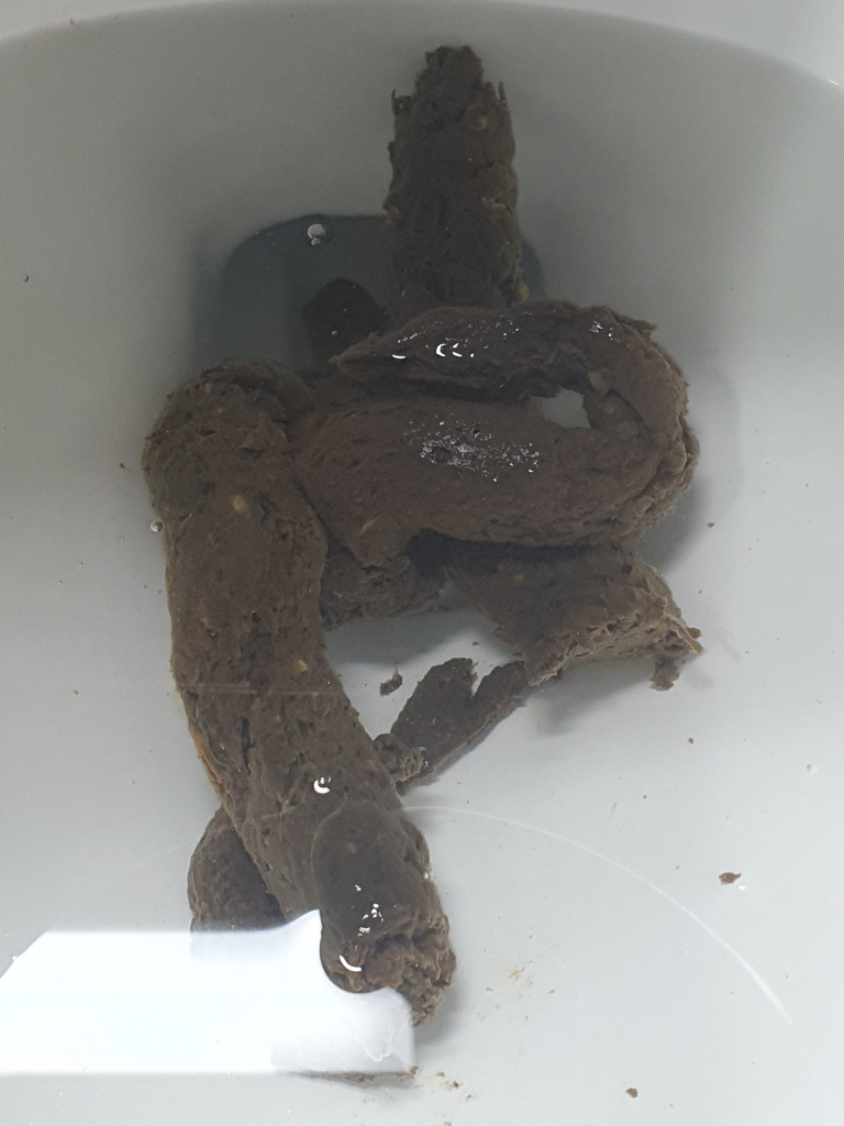 진한 갈색의 변이라 보이고 흑색변의 가능성은 떨어집니다. 흑색변이 추정되는 상황에서 명치 통증, 속쓰림, 발열 등의 증상이 있다면 즉시 진료가 필요합니다.