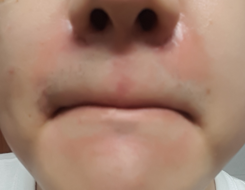 코주변 입 아래쪽도 붉은기가 생겼는데