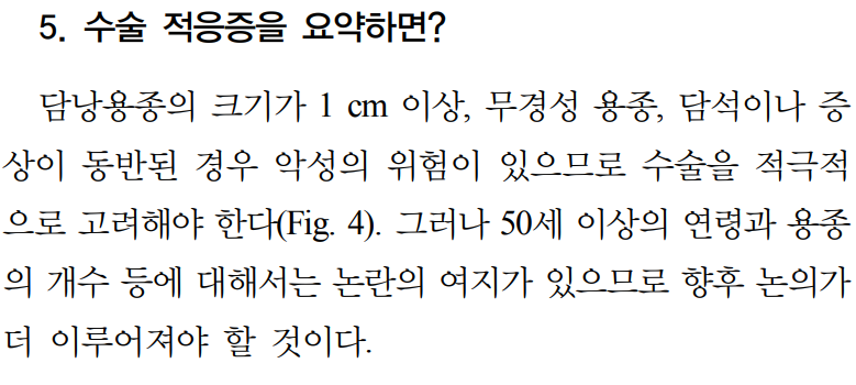 담낭용종의 경우 일반적으로 개수는 크게 문제가 되지 않고 크기를 중요시 합니다
