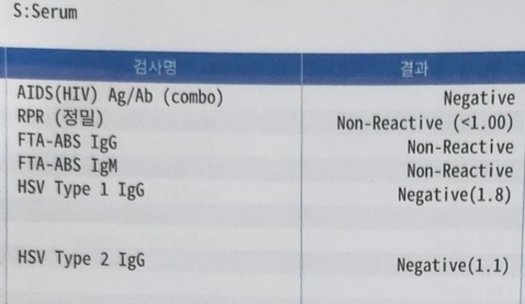 정리하면, 이 검사지만 보면 HIV, 매독, 헤르페스 1형·2형 모두 음성으로 해석하시면 됩니다. 다만 중요한 점은 검사 시점입니다. 노출 직후 너무 이른 시기에 검사하면 아직 항원이나 항체가 형성되지 않아 실제 감염이 있어도 음성으로 나올 수 있습니다. 특히 헤르페스 혈액검사는 초기 감염 진단에 한계가 있고, 증상이 있을 때는 혈액검사보다 병변 부위 유전자검사나 바이러스검사가 더 정확합니다.