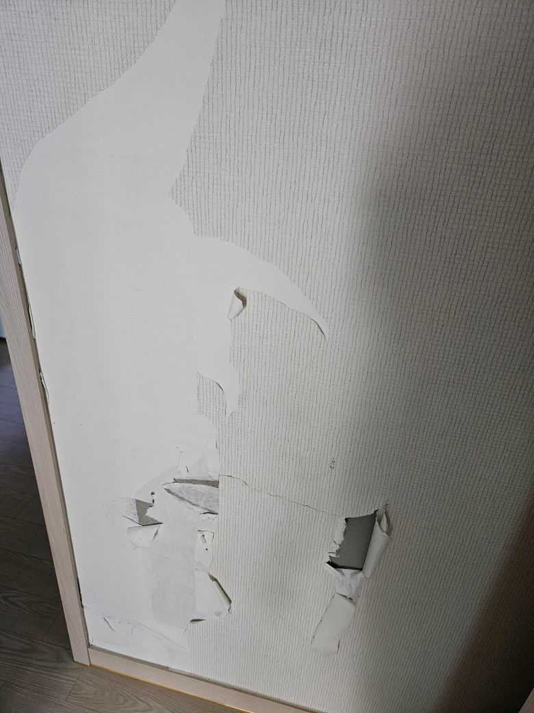 저희 집 주인님께서 무료하셨는지 벽지를 아작 냈습니다..