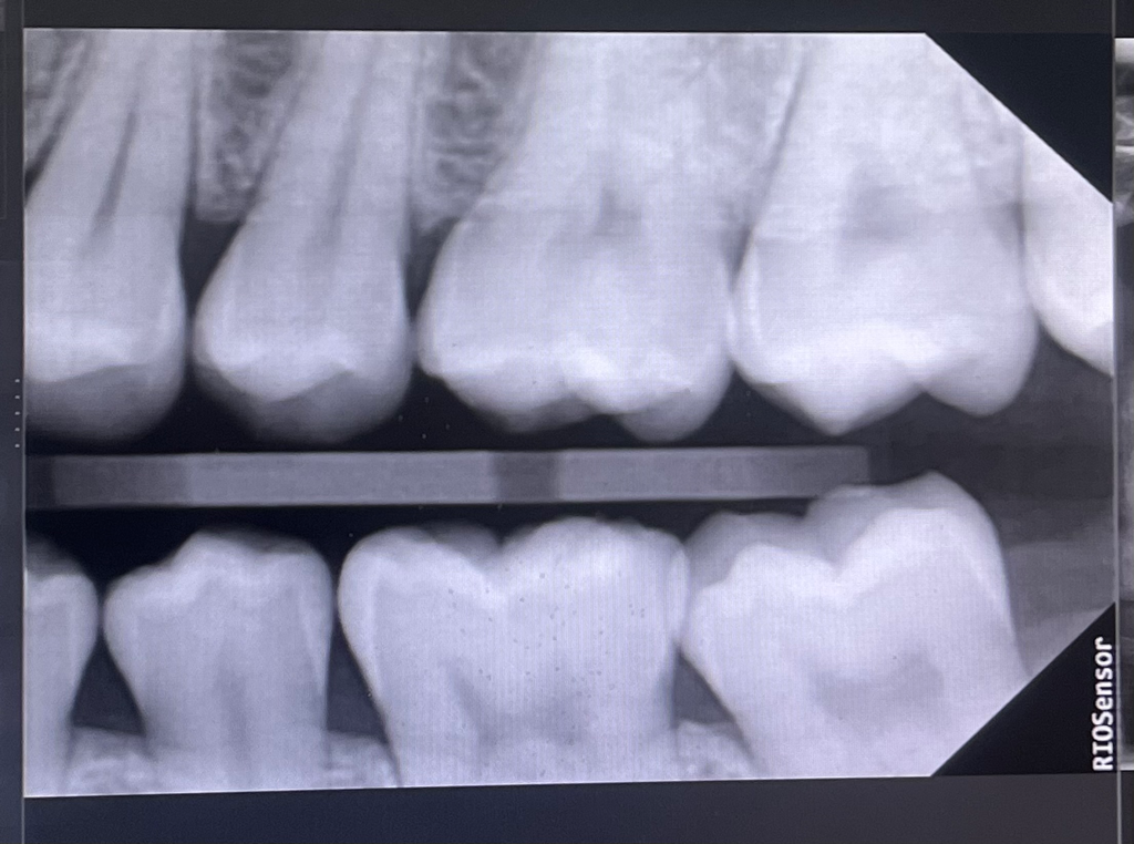 엑스레이 상으로는 큰 인접면 충치는 보이지 않습니다. 일단 자켜보시는게 좋을것같습니다
