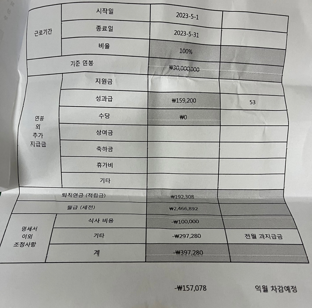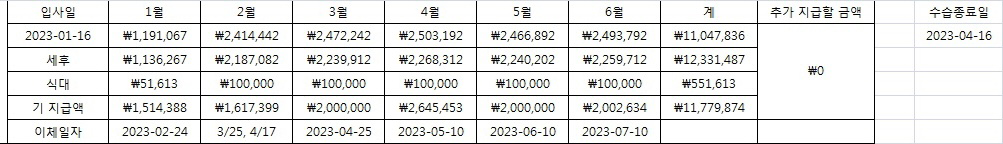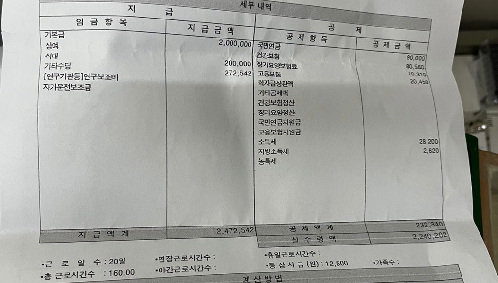 2. 그리고 세금 및 4대보험료가 공제된 실수령액과 통장 이체내역은 일치하는게 맞습니다. 회사에서 수습기간에 급여를 더 많이