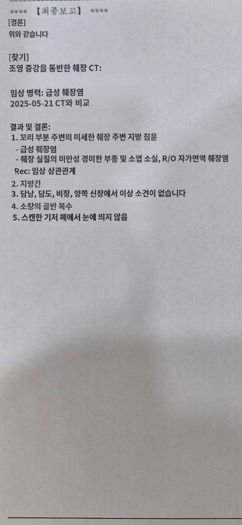 없는 거 같은데 판독결과 보고 해석 좀 해주세요