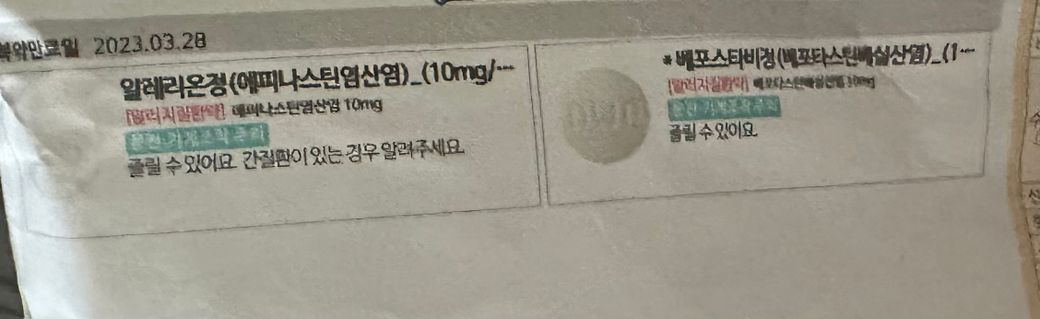 아래 사진이 피부묘기증 증상 있을 때만 먹는 약 입니다..!