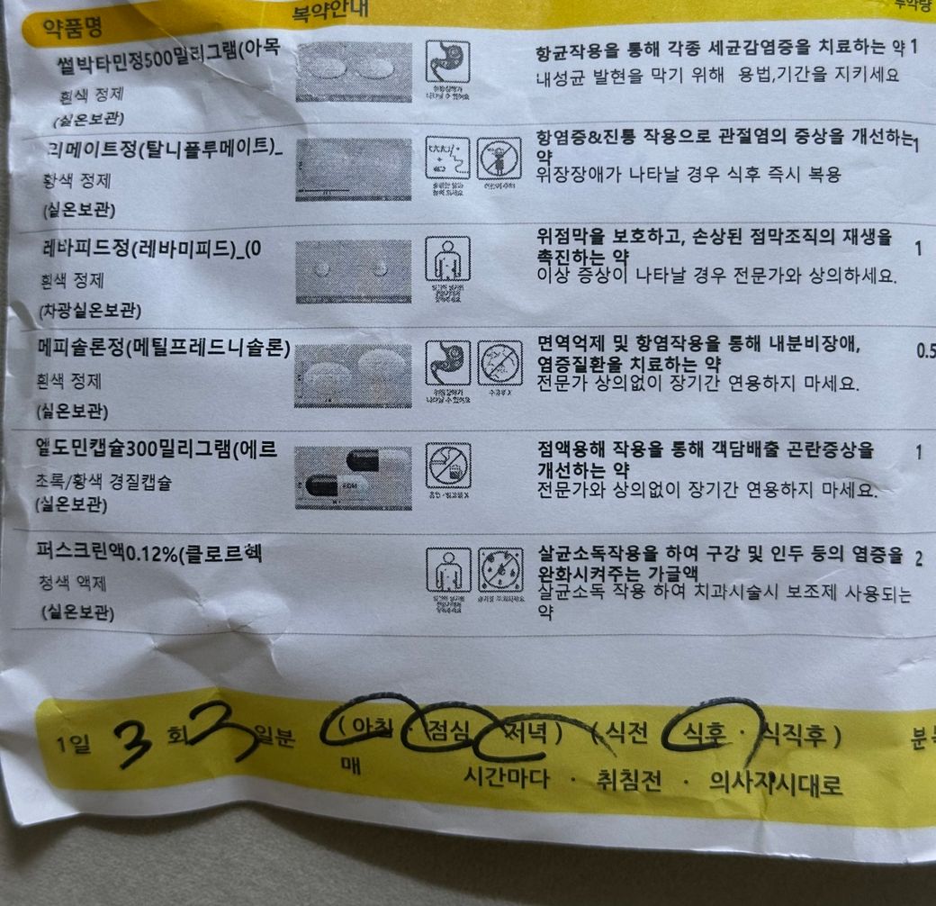 오늘 오전 11시쯤 목아파서 이비인후과 갔다가 편도염이 심하다고 수액에 항생제 맞자고하셔서 수액 맞았습니다. 고농축비타민에 항생제가 섞여있다고 했고 30분 맞고 나와서 1시에 햄버거먹고 바로 약먹었습니다. 1시반경 처방해주신 가글도 했구요