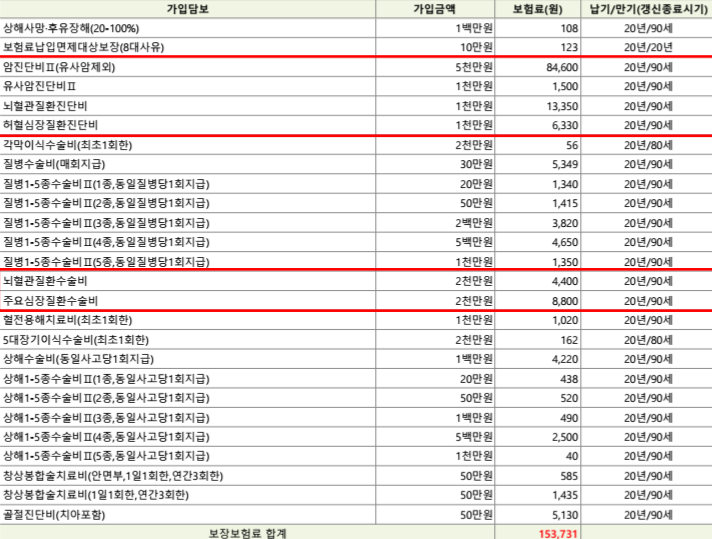암에 대한 보장금액도 충분하시고 뇌와 심장 그리고 수술비보장까지