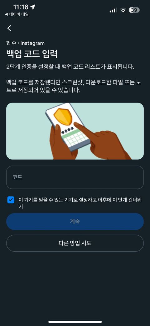 인스타그램 이중코드 분실 했는데 방법