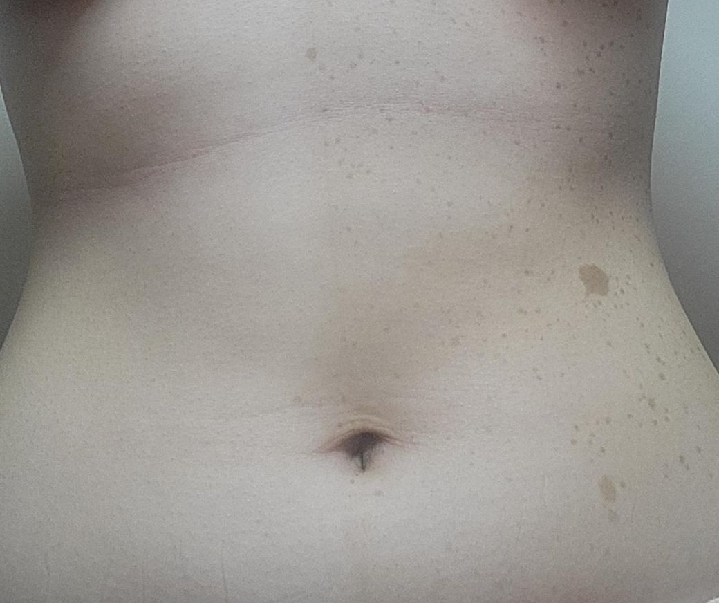 태어났을때부터인지는 잘 모르겠는데 아주 어렸을 때부터 배의 반만 점이 있었어요. 등도 마찬가지구요 배뿐만 아니라 신체