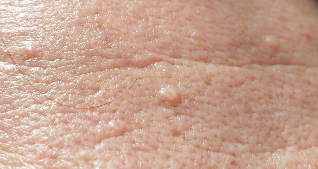 현재로서는 사진만으로 정확히 무엇인지 판단하기는 어렵습니다. 하지만 모낭염 혹은 모공각화증을 감별하는 것이 좋겠습니다. 먼저 피부과에 내원하시어 진료를 받아보시는 것이 좋겠습니다.