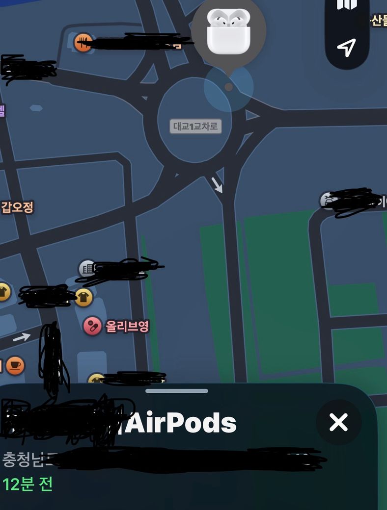 에어팟 분실 후 앱에서 위치가 바뀌며 최근 시간으로 뜬다면, 다른 사람이 사용 중일 가능성이 높습니다..! ㅠㅠ