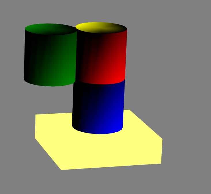 이렇게 회전 후에 파란색 원통을 옆으로 돌려서 빨간색과 녹색 원통도 같이 그대로 옆으로 돌리려고 하였으나