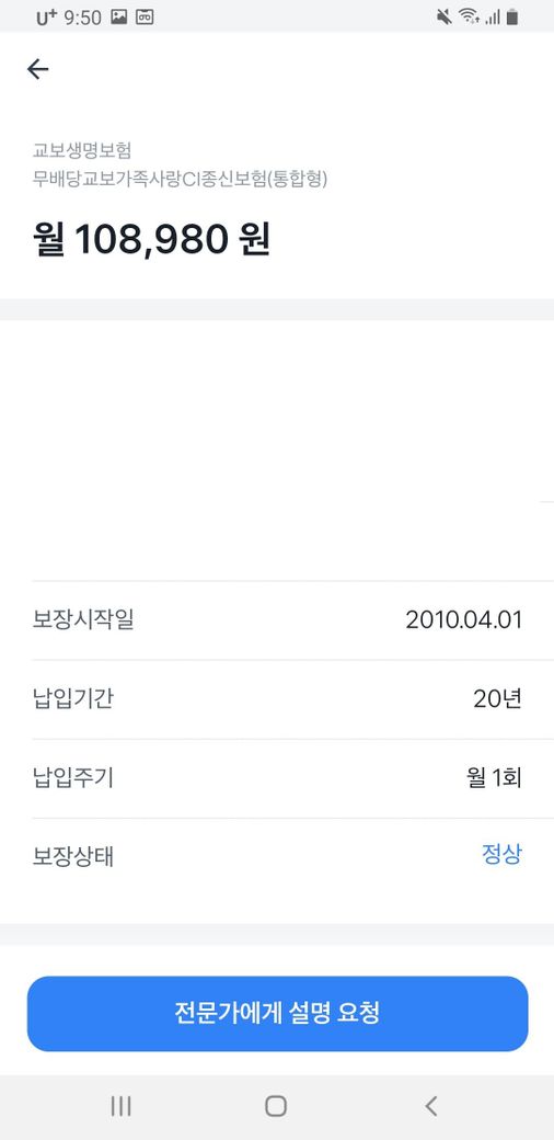 어렸을때 부모님이 가입해주신 보험인데 CI보험입니다.