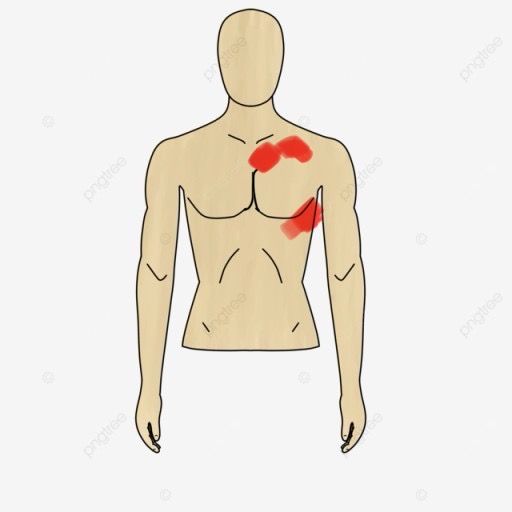 사진에 보이는 부분 가슴에 통증이 있어요