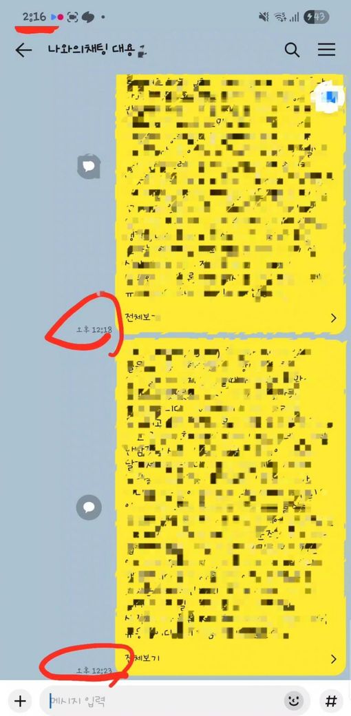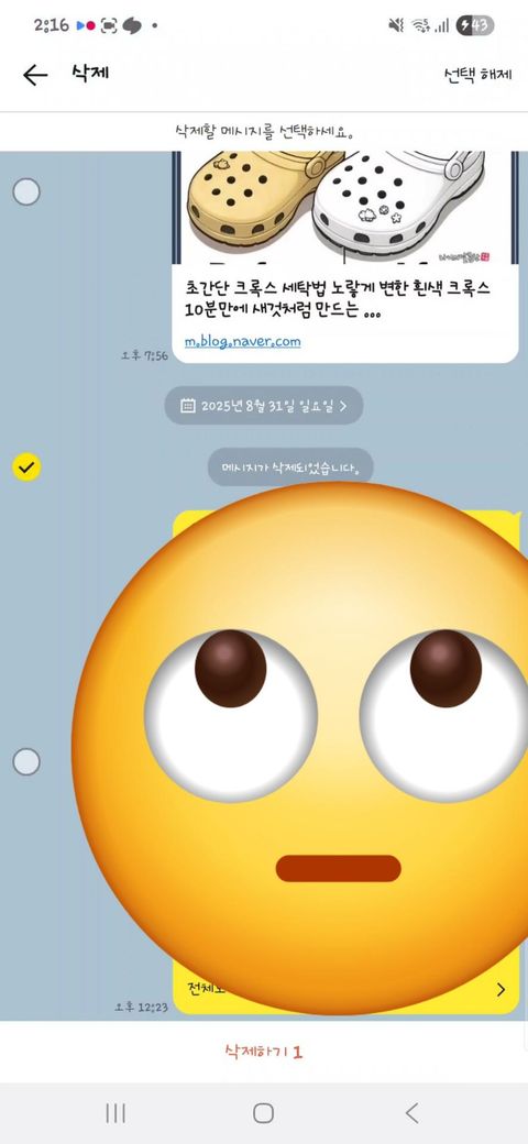최근 카톡에 추가된 메세지 삭제 기능에 제한시간을 얼마로 알고계셨나요들?🤭 본인에게서만 삭제는 시간 제한이 없지만 모든 대화상대에게서 삭제는 전 5분으로 알고 있었는데요~ 평소 나와의채팅방 비롯 단톡에서도 참여자가 모두 빠지고 혼자 남게되면 굳이 나가지 않고 혼자 메모장 식으로 쓰고 있었는데 이번에도 그런 상황에서 어쩌다 알게 된 사실이 하나 있어 이렇게 공유드립니다♡