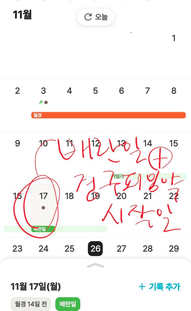11월 3일 월경 시작 (다음 예상일 11월 29일)