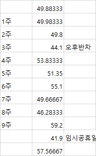 현재 이게 7~8월달에 제가 계산했을 때 주당 근무 시간입니다.