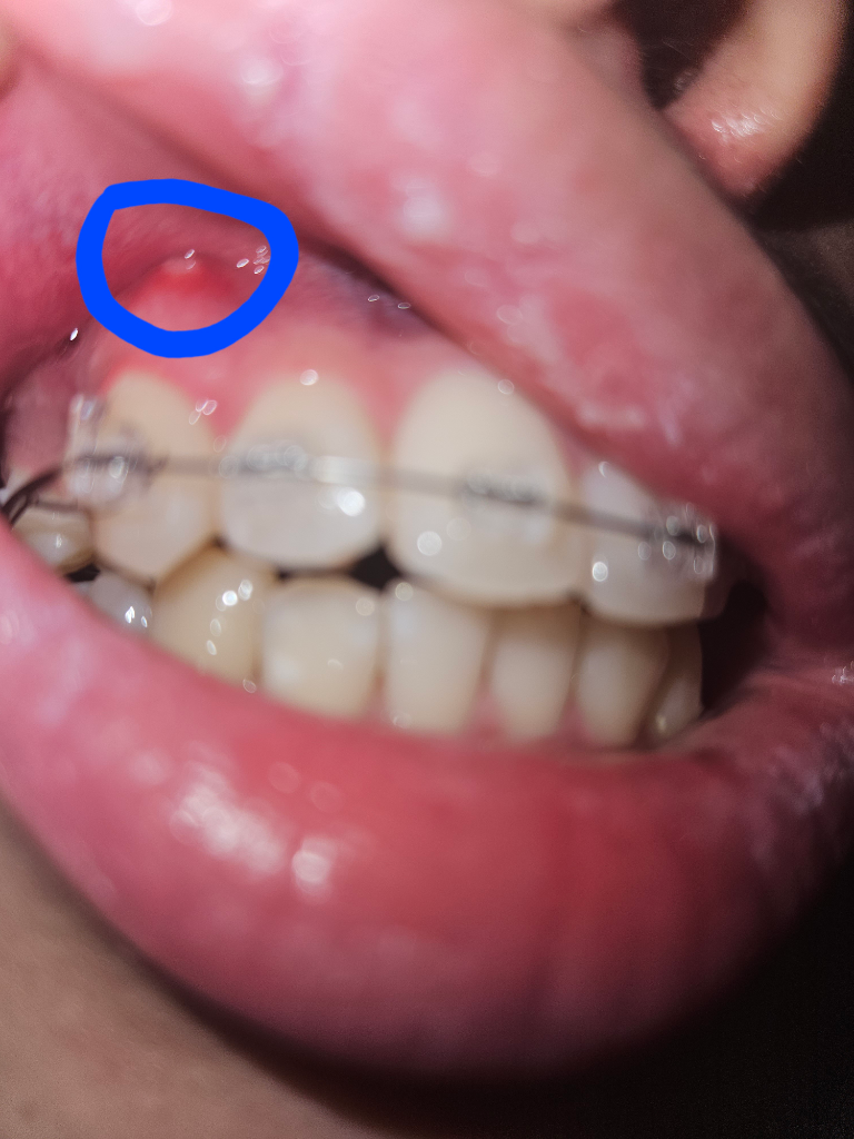 염증이 신경에서 비롯된 것일 수도 있는데 이건 방사선 사진 및 검사가 필요합니다. 만약 신경에서 비롯되어 잇몸까지 농이 잡힌 거라면 교정치료 중간에라도 신경치료가 필요하겠습니다.