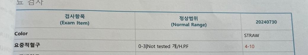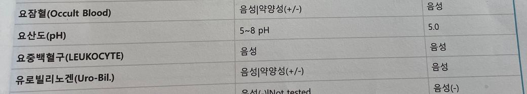 정상범위를 넘은 것처럼 적혀져있는데 요잠혈은 음성이라고 떠서요 그런데 또 특이사항에 요중적혈구에 대한 이야기는 없어서 혈뇨가 나온 건지 안 나온건지 걱정이 되어서요