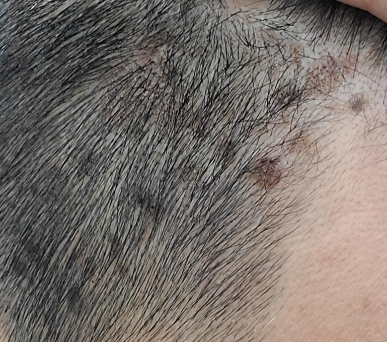 머리를 조금 짧게 이발하고 새치 염색을 하고 자세히 보니 두피에 점들이 생겨났는데요