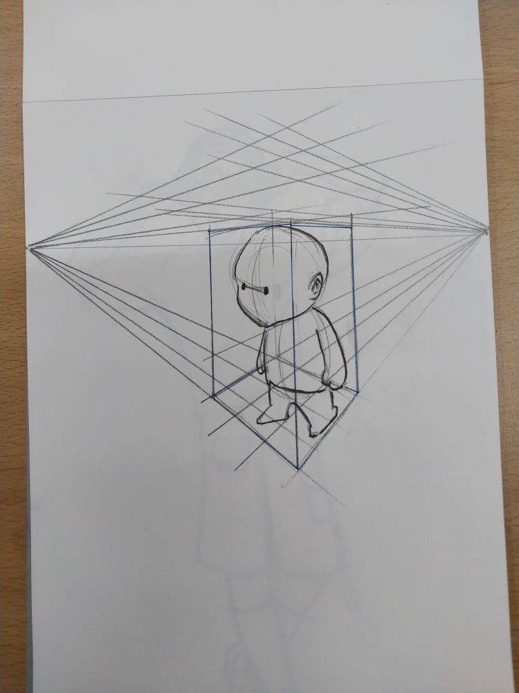 투시선을 바탕으로 대상을 그려줍니다. 이때 대상의 크기와 모양은 투시선에 맞춰 조절해야 합니다.마무리하기