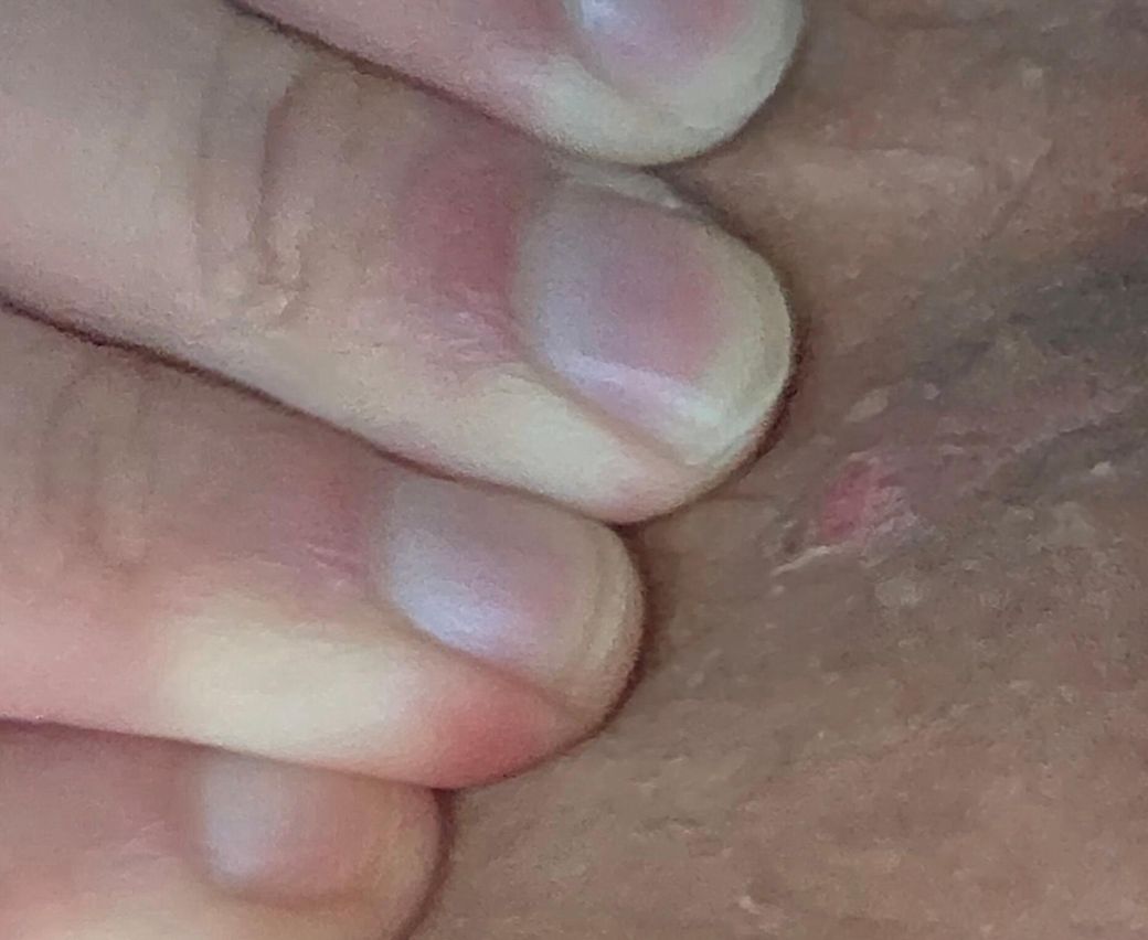 사진상 병변은 작고 국소적인 홍반성 구진 형태로 보이며, 중심부에 미세한 미란 또는 각질 변화가 동반된 소견입니다. 통증이나 압통이 없고, 1년 이상 경과 없이 유지되는 양상이 아니라면 급성 항문주위 농양의 전형적인 모습과는 거리가 있습니다.